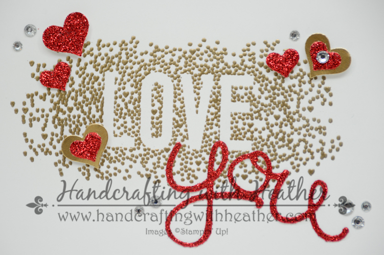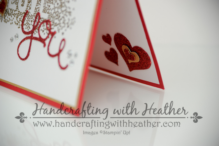 Finally, I added some Real Red 1/4″ Cotton Ribbon to the front and a few little hearts and a strip of DSP to the inside to finish it off.