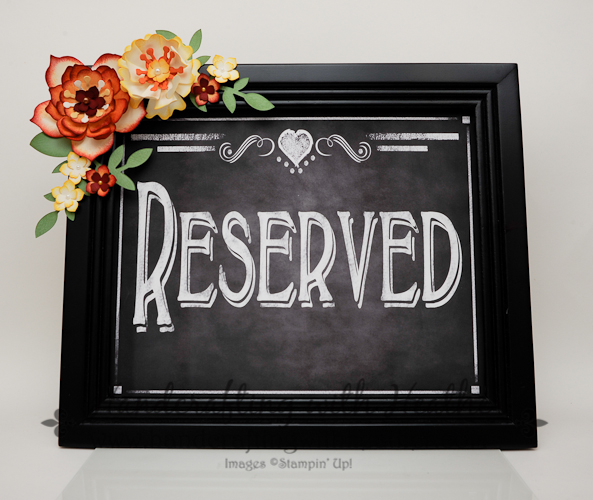 If you have ever planned a wedding, you know that there is a lot of signage needed, reserved signs for the family, a thank you message for the gift table, instructions for the photo booth (all the rage at weddings these days), etc.  Of course, you know I couldn’t just put a plain old framed sign out there… what a perfect opportunity to make our signage something beautiful for the wedding using dies and punches from Stampin’ Up!