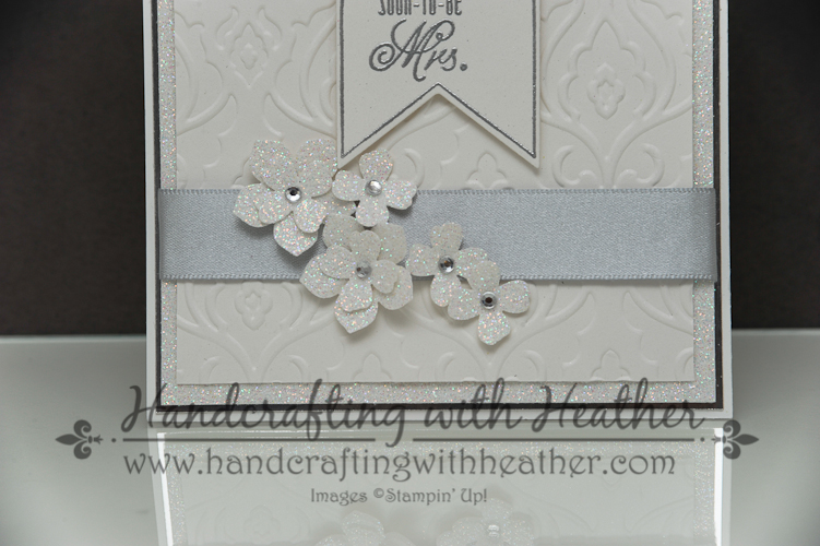 I love how the Dazzling Diamonds Glimmer PaperSilver Foil,  and Silver Satin Ribbon all came together to create such an elegant banner.  The flowers from the Itty Bitty Accents Punch Pack were the perfect addition for embellishing the banner.