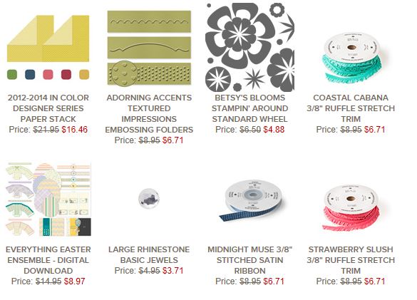 Click here to see the Weekly Deals from Stampin’ Up! in my online store. The Weekly Deals are only while supplies last and only available at these great prices through March 10.