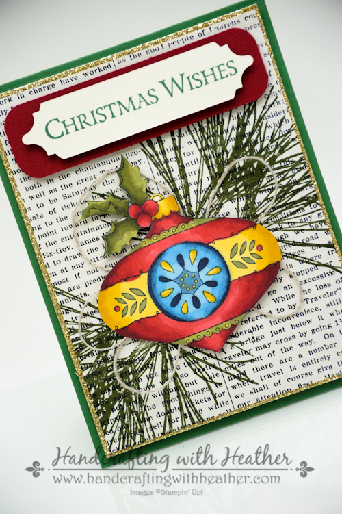 I had a lot of fun creating today’s project for you.  This beautiful holiday card features the Christmas Bauble and Ornamental Pine stamp sets from Stampin’ Up!  These two stamp sets were both ones that jumped off the page for me and began singing my name as soon as I saw them in the Holiday Catalog.
